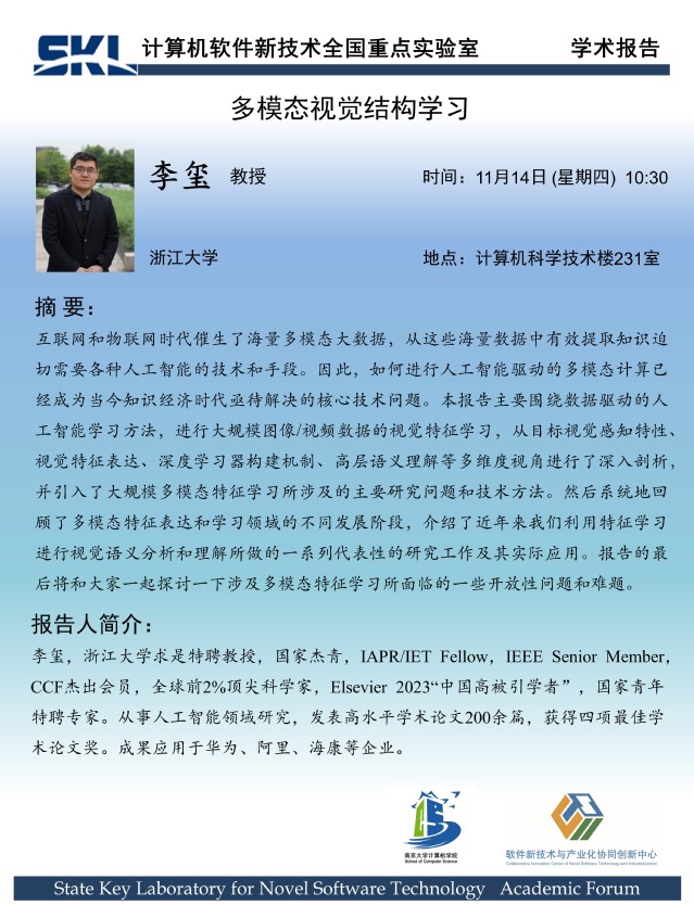 2024年11月14日 “软件新技术讲坛” 学术报告 - 李玺 教授