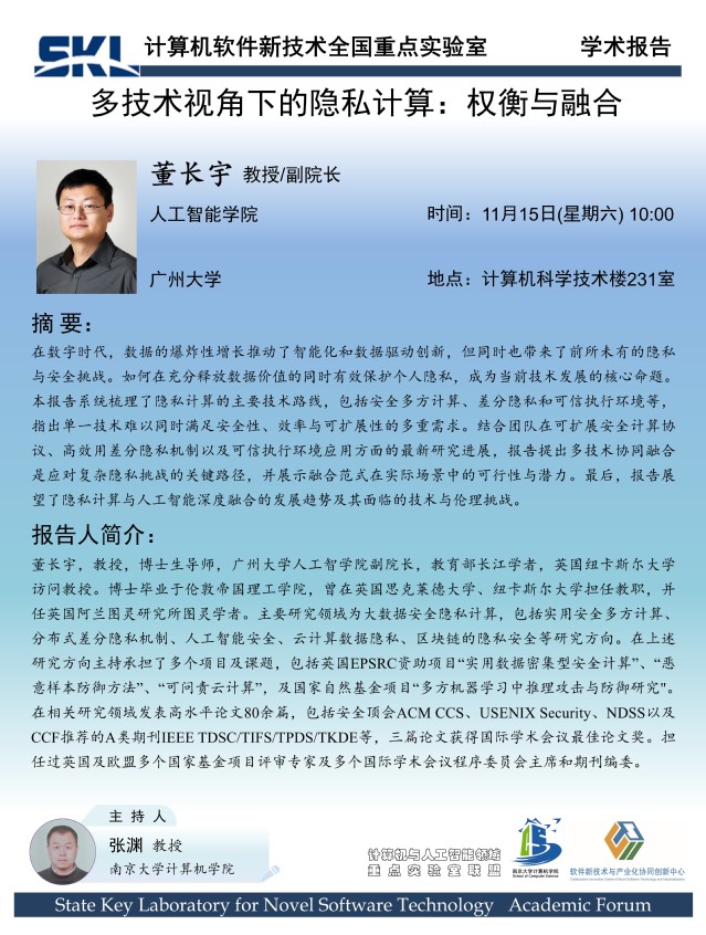 2025年11月15日“软件新技术讲坛”学术报告 - 董长宇 教授