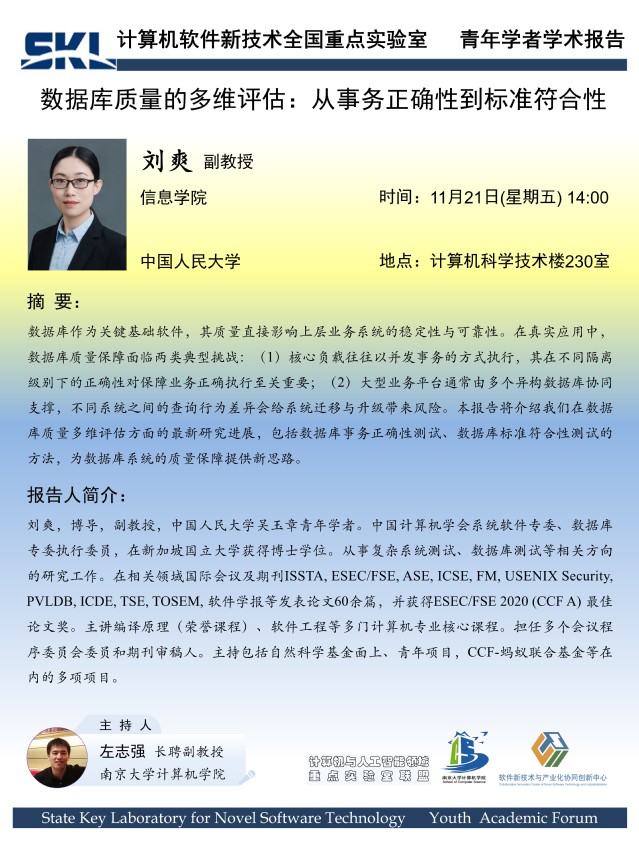 2025年11月21日“软件新技术讲坛”学术报告 - 刘爽 副教授