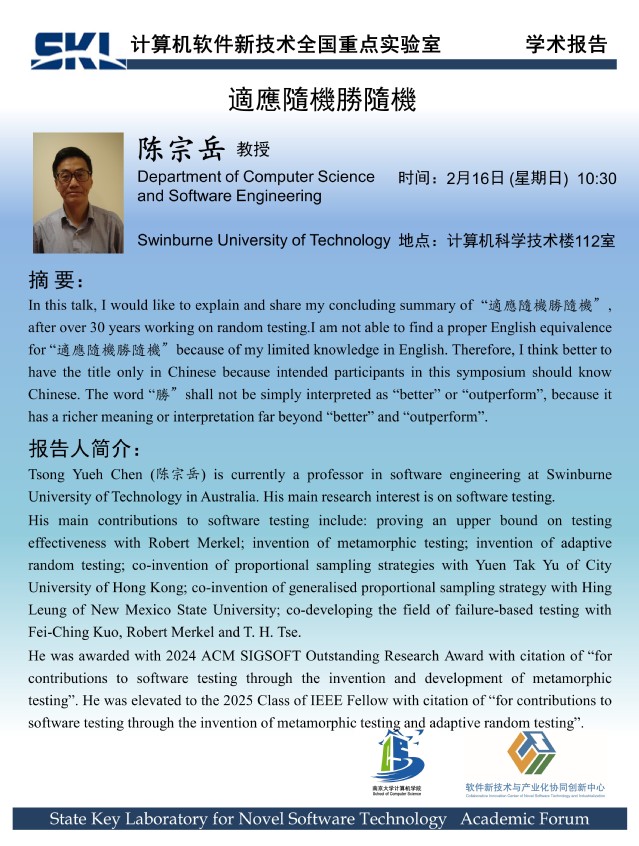 2025年2月16日 “软件新技术讲坛” 学术报告 - 陈宗岳 教授