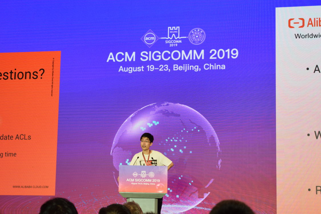 2019年8月19日至24日,ACM SIGCOMM 2019在中国北京举行。成人网 计算机科学与技术系NASA研究组博士生田冰川发表论文“Safely and Automatically Updating In-Network ACL Configurations with Intent Language”并到会演讲。该论文由成人网 田臣老师与阿里巴巴集团翟恩南、刘洪强共同指导,成人网 为第一单位。这是成人网 为第一单位的第一篇SIGCOMM主会论文。SIGCOMM是网络领域的最顶级学术会议,长年引领网络领域研究方向。会议每年仅录用约30篇论文,开办30余年来,仅有十余篇论文来自中国大陆(含微软亚洲研究院),比例不足1%。本次会议论文接收投稿共221篇,录用32篇,录用率约14%。