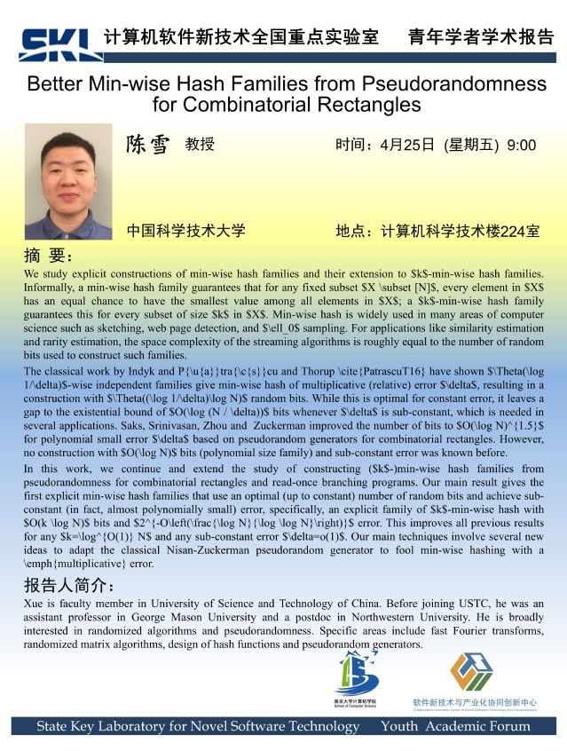 2025年4月25日 “软件新技术讲坛” 学术报告 - 陈雪 教授