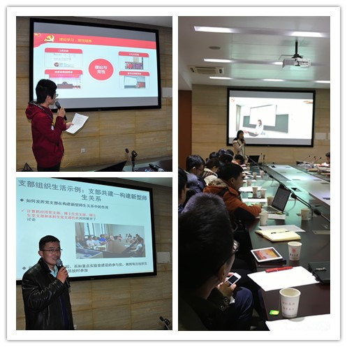 计算机系共有24个基层党支部,今年有14个支部报名参加现场述职评优,其余支部提交年度总结报告。14位支部书记结合工作实际,从自身履职情况、党的十九大学习贯彻情况、“两学一做”常态化制度化学习教育活动开展情况、支部执行“三会一课”制度情况和支部示范性作用发挥情况等方面,对2017年党支部的各项活动工作进行了总结汇报。各个支部百花齐放,党员活动形式繁多、各具特色,如本科生支部“机房党员辅导岗”,将志愿服务和专业学习相结合,在实践中践行服务宗旨;教师应用支部开展“师生支部共建”,在沟通互动中共话和谐师生关系;研究生支部以党的十九大为契机,深入桦墅村周冲村开展新农村建设调研。除此以外,青春喜迎十九大知识竞赛、参观南京规划展览馆、学“核潜艇之父”树理想信念等形式新颖的活动也层出不穷。各支部书记在介绍支部成绩的同时,也排查了当前工作存在的问题,并积极思考,提出了今后改进工作的思路措施。