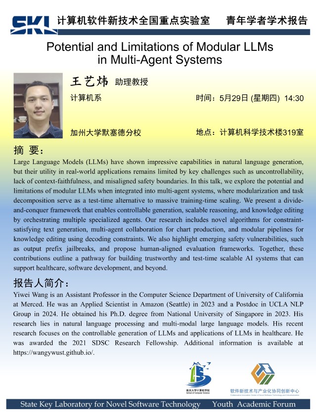 2025年5月29日 “软件新技术讲坛” 学术报告 - 王艺炜 助理教授