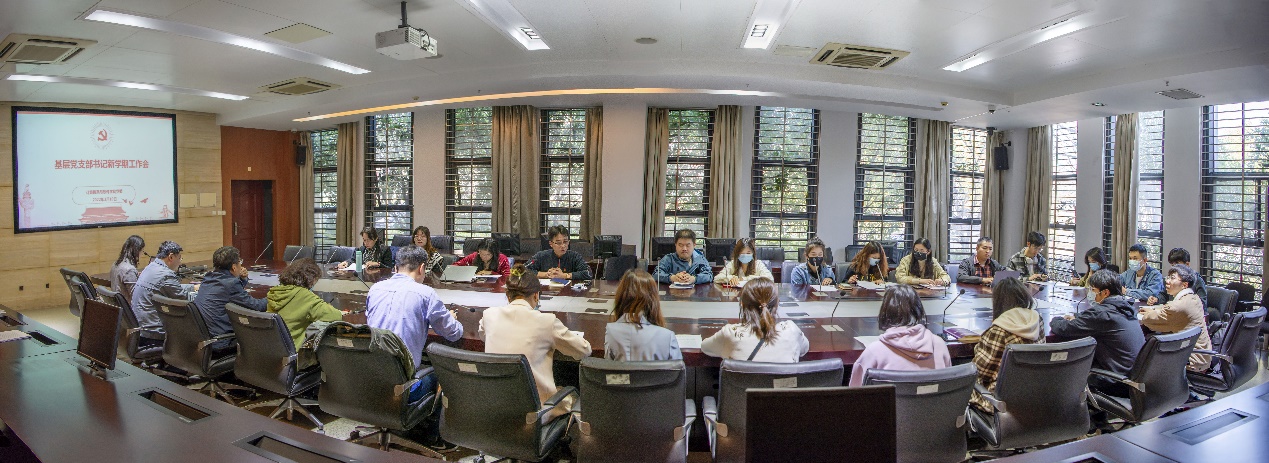 党委书记武港山首先传达了学校第十五届党委会第九次全体(扩大)会议上胡金波书记的讲话精神,并介绍2022年学校党委工作重点。接着武书记指出,本学期院系党委的重点工作之一是做好巡视整改工作。巡视整改是一项严肃的政治任务,需要每位党支部书记的高度重视和全力支持配合。巡视反馈意见中有两方面问题与基层党支部关系较大,一是基层党支部建设问题。武书记希望各支部召开专题会议,针对如何开展有特色有创意的组织生活、如何提高党员获得感、特殊支部的教育管理等巡视反馈问题进行深入研究,制定相应举措。二是意识形态问题。针对近期一些热点事件,武书记强调我们应相信政府表达和官方消息,不发表不当评论。要在思想上始终与党中央保持一致,认真学习十九届六中全会精神,全力迎接二十大胜利召开。最后武书记指出,作为支部书记有责任做好支部党员的思想政治教育工作,坚定理想信念,把全面从严治党落到实处。