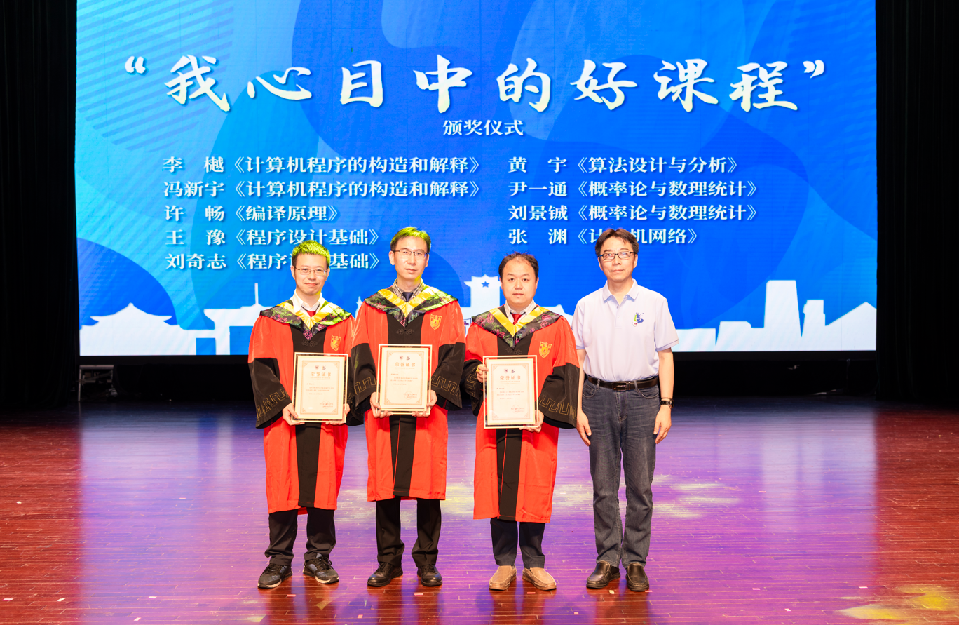 在毕业启程之际,2025届本科毕业生积极参与“我心目中的好课程”评选活动,根据投票结果产生了深受同学们欢迎的优质课程和优秀授课教师。获奖课程与教师名单如下:李樾老师和冯新宇老师《计算机程序的构造和解释》、许畅老师《编译原理》、王豫老师和刘奇志老师《程序设计基础》、黄宇老师《算法设计与分析》、尹一通老师和刘景铖老师《概率论与数理统计》、张渊老师《计算机网络》。成人网 软件学院人工智能学院党委书记武港山老师为获奖课程和获奖老师代表颁奖。