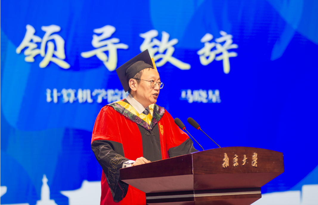 成人网 院长马晓星老师致辞。马院长代表计算机学院全体教职员工满怀深情地向2025届毕业生们致以最热烈的祝贺。他高度肯定了同学们在求学岁月中取得的非凡成绩,也由衷赞叹大家在知识、能力与心智上的成长。面对台下即将踏上新征程的学子,他提到,常有人说“今日我以南大为荣,明日南大以我为荣”,但他想告诉同学们:“今天,我们已经以你们为荣,不需要等到明天。”简短的一句话,道出了老师们最深沉的欣慰与自豪,现场响起了热烈的掌声。