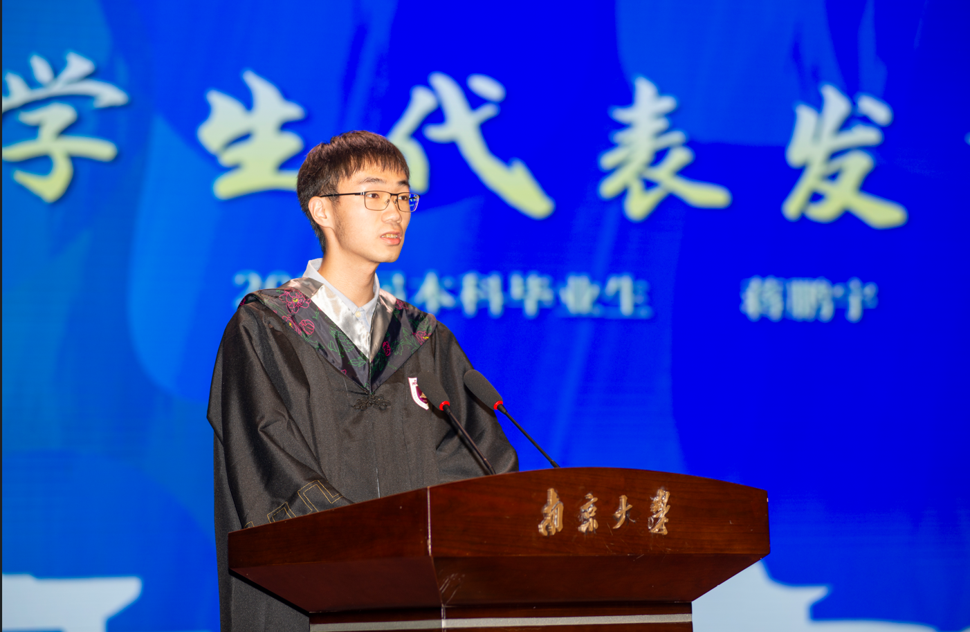 蒋鹏宇同学首先代表2025届全体本科毕业生向辛勤付出的老师、家长们致以最诚挚的感谢与敬意。站在毕业的节点回望,他感慨时光荏苒,无数美好记忆涌上心头,构成了属于南大计算机学子的独家记忆。他特别感谢学院提供的优质科研平台与学术指导,让同学们得以在专业领域深耕成长。面对未来,蒋鹏宇表示将带着从母校收获的知识力量与精神滋养,怀揣对计算机事业的热忱,勇敢追逐梦想,在新的征程上续写南大人的精彩篇章。