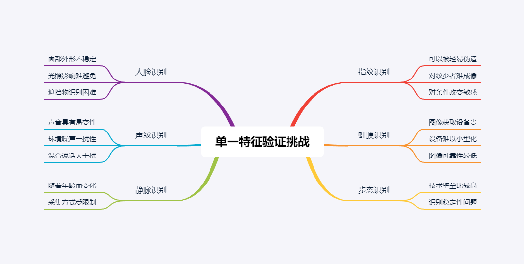 随着基于生物特征的验证系统的普及,其安全性受到越来越多的重视。基于单一生物特征信息的验证系统的局限性逐渐暴露出来。市场普遍应用的单一特征验证方式受到越来越多的安全性挑战。